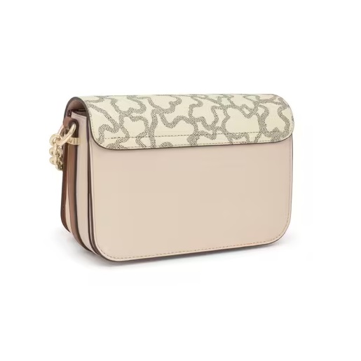 Bolso bandolera mediano Chain Kaos Icon de lona con detalles de piel sintética en color camel y beige. Cierre de solapa con botón magnético. Tres bolsillos interiores abiertos. Asa bandolera ajustable. Medidas (alto x ancho x fondo): 15 x 28 x 11 cm.