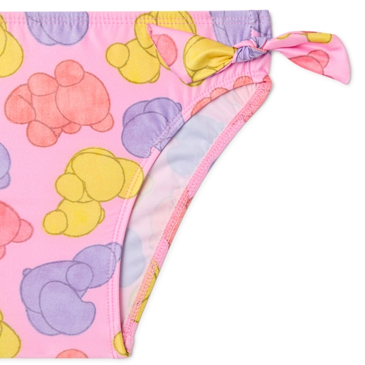 Bikini Tous Baby, top de escote redondo con nudos en los tirantes y en los laterales de la cinturilla. Estampado Bold Bear multicolor