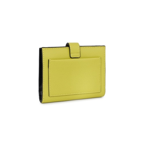 Cartera Pocket TOUS La Rue de piel sintética en color lima. Cierre con botón a presión y bolsillo trasero abierto. En el interior cuenta con un compartimento abierto para billetes, un bolsillo con botón a presión para monedas y seis ranuras para tarjetas. Medidas (alto x ancho x fondo): 10 x 12 x 3 cm.
